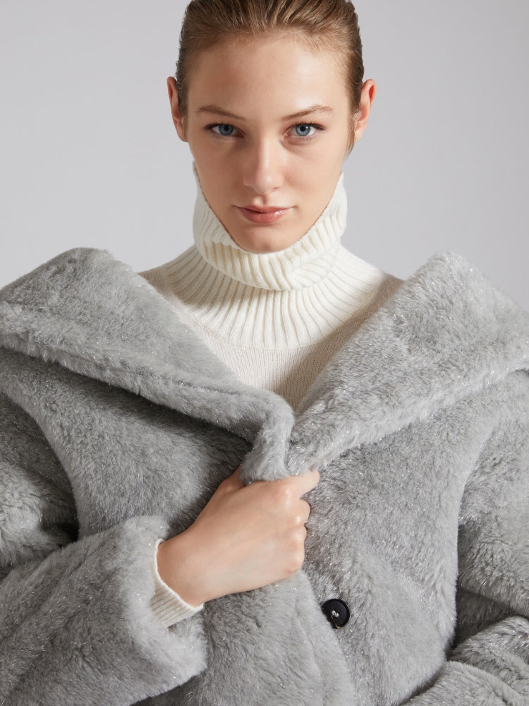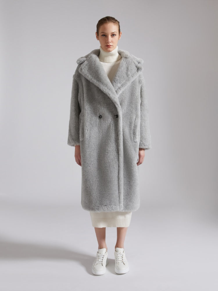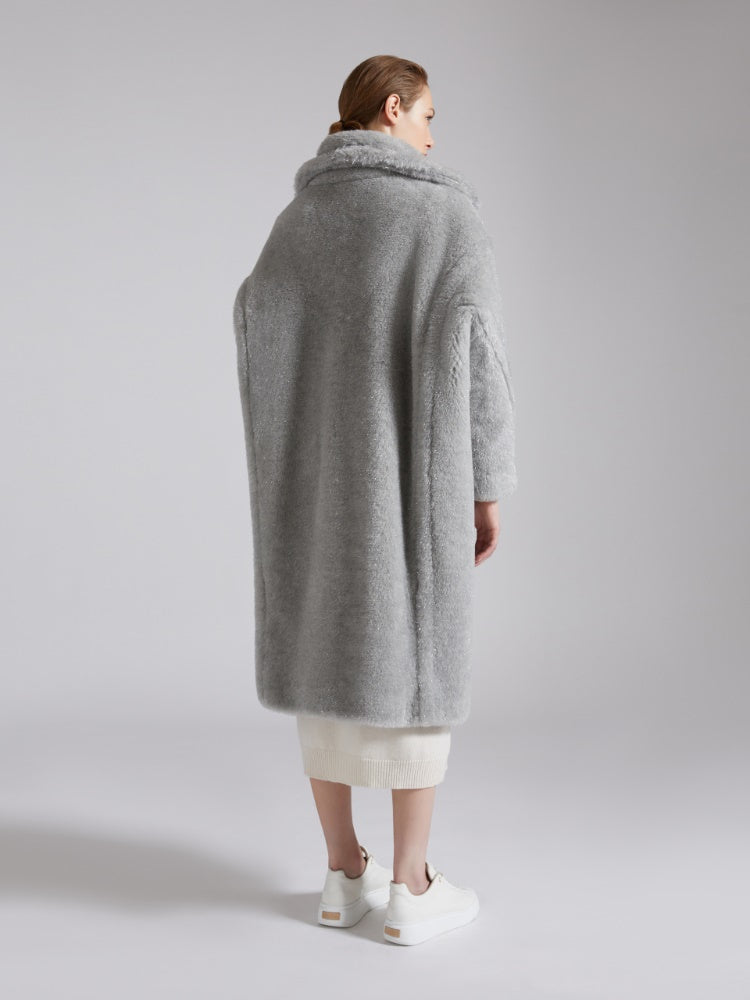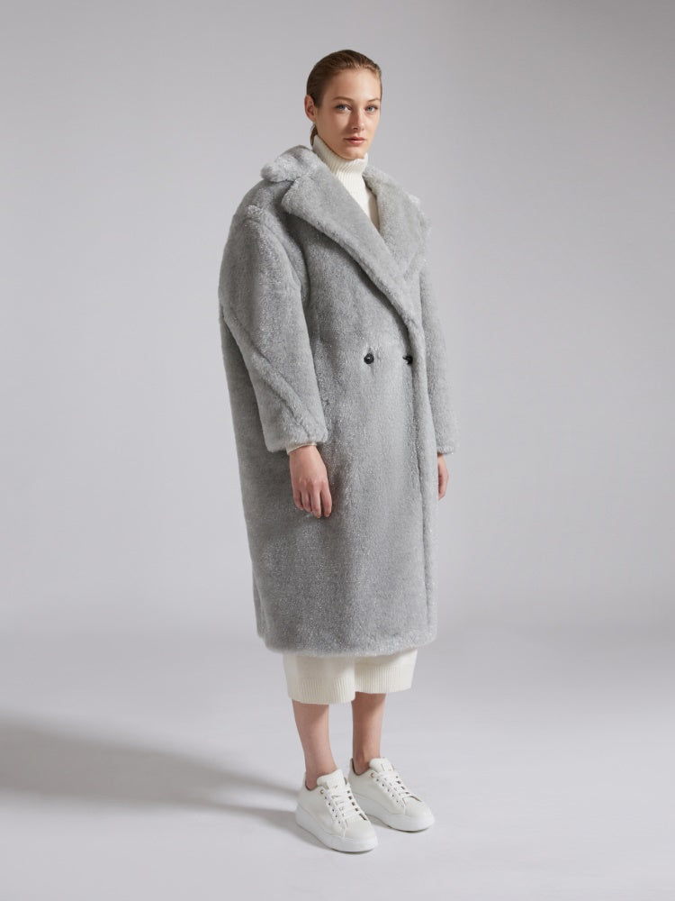 Designed in 2013, the Teddy Bear Coat was inspired by an archival garment from the 80s and immediately became an it-coat. Stars and influencers loved its perfect alchemic blend of glamour and playfulness. Its special camel-hair texture on a silk base is created using sophisticated technology developed by the creative team with an Italian supplier, capable of producing a unique faux fur. The coat's abundant volume is a celebration of the opulent extravagance of this fabric. - Oversized fit - Lapel collar - Dropped set-in sleeves - Horizontal welt pockets - Double-breasted closure - Branded lining - Horn buttons - Length: 110 cm / 43 inches