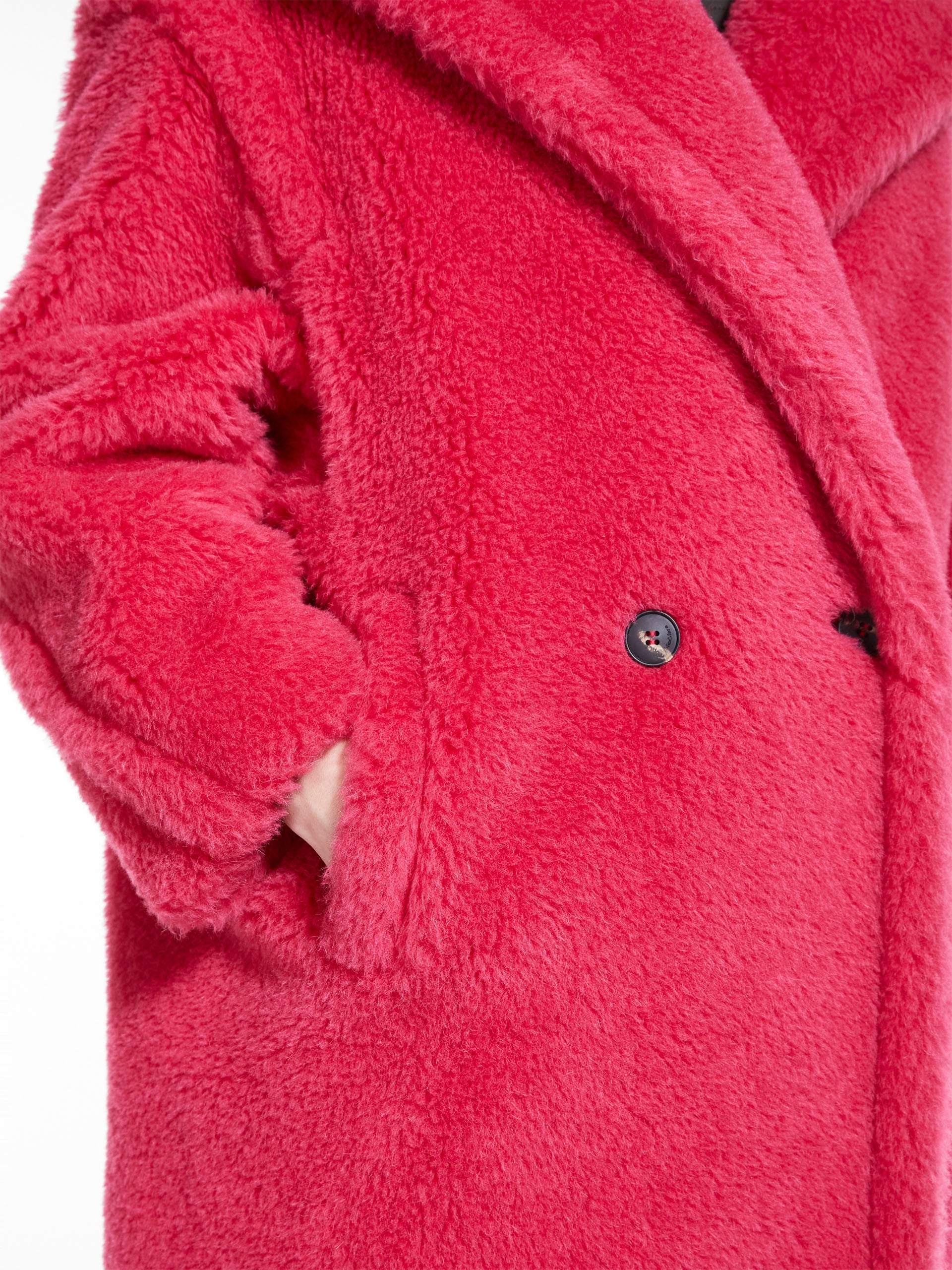 Designed in 2013, the Teddy Bear Coat was inspired by an archival garment from the ’80s and immediately became an it-coat. Stars and influencers loved its perfect alchemic blend of glamour and playfulness. Its special alpaca wool texture on a silk base is created using sophisticated technology developed by the creative team with an Italian supplier, capable of producing a unique faux fur. The coat's abundant volume is a celebration of the opulent extravagance of this fabric.
