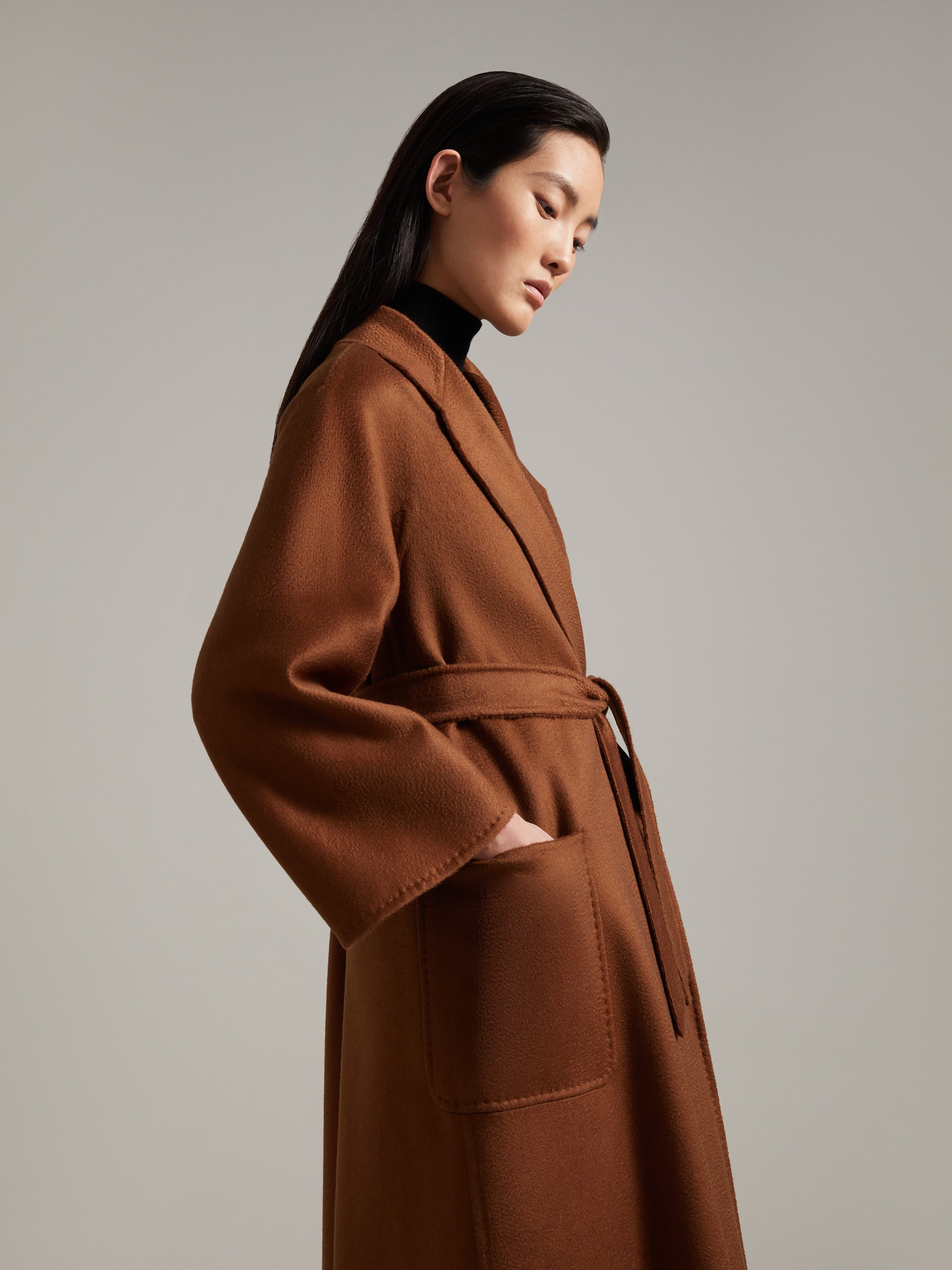 A classic from the Max Mara wardrobe, a symbol of a laid-back allure that does not sacrifice luxurious fabrics and impeccable attention to detail. Reinterpreted in 2016 and reintroduced in all the collections since then, it is one of the iconic pieces of the Max Mara style. It stands out with its generous, enveloping silhouette that embraces the body, and can be customised thanks to the coordinated belt. The kimono sleeves and large patch pockets underline its understated, refined luxury.