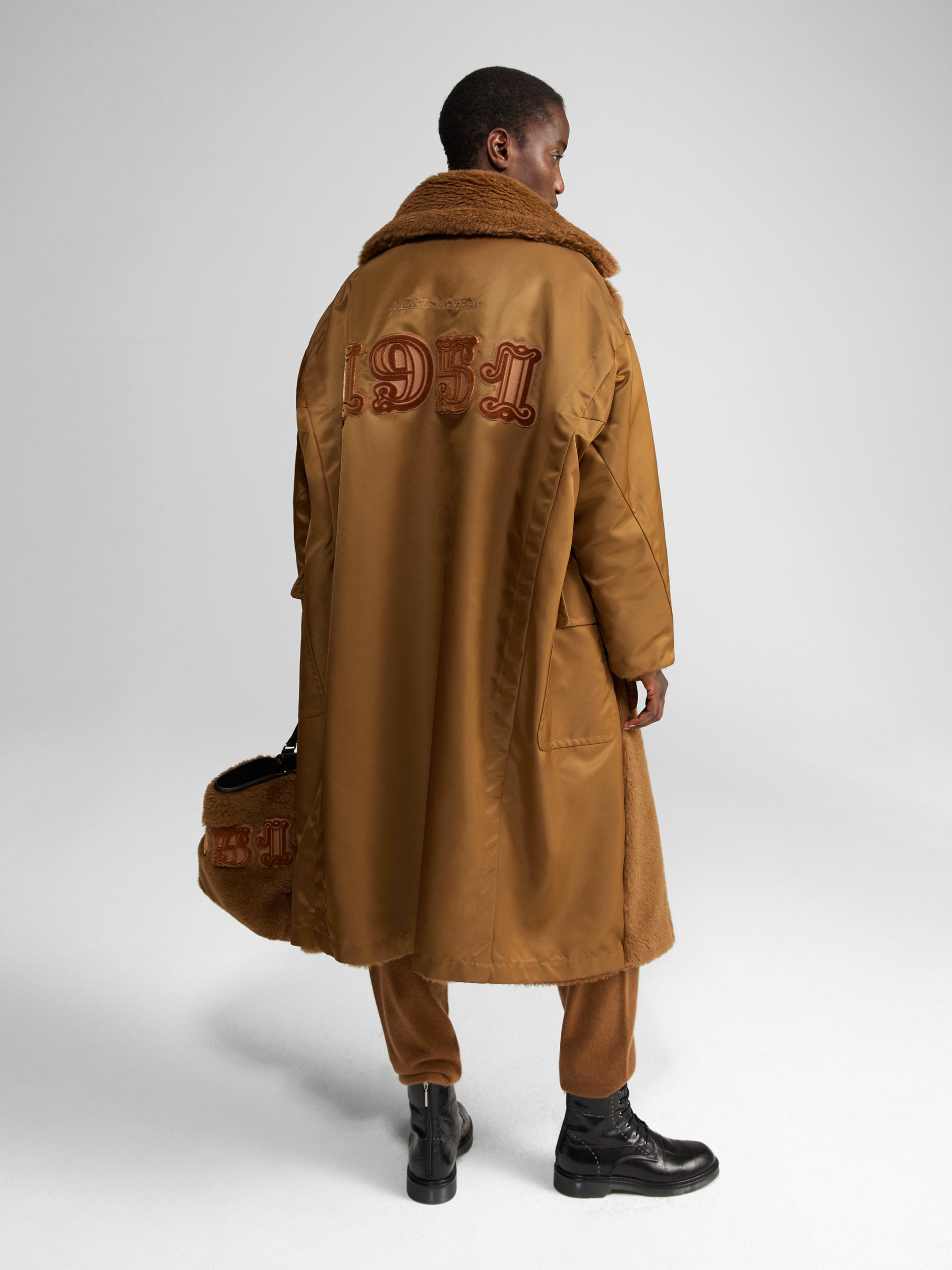 To commemorate Max Mara’s anniversary, the Teddy model has become reversible with its all-new tonal water-repellent technical nylon interior. The coat’s reversible interior features the Max Mara 1951 thread-embroidered detail in the MaxMaragram font and a matching velvet-effect patch appliqué. Flap-adorned large patch inner pockets. Exclusively available in the season's new iconic colour: vicuña.
