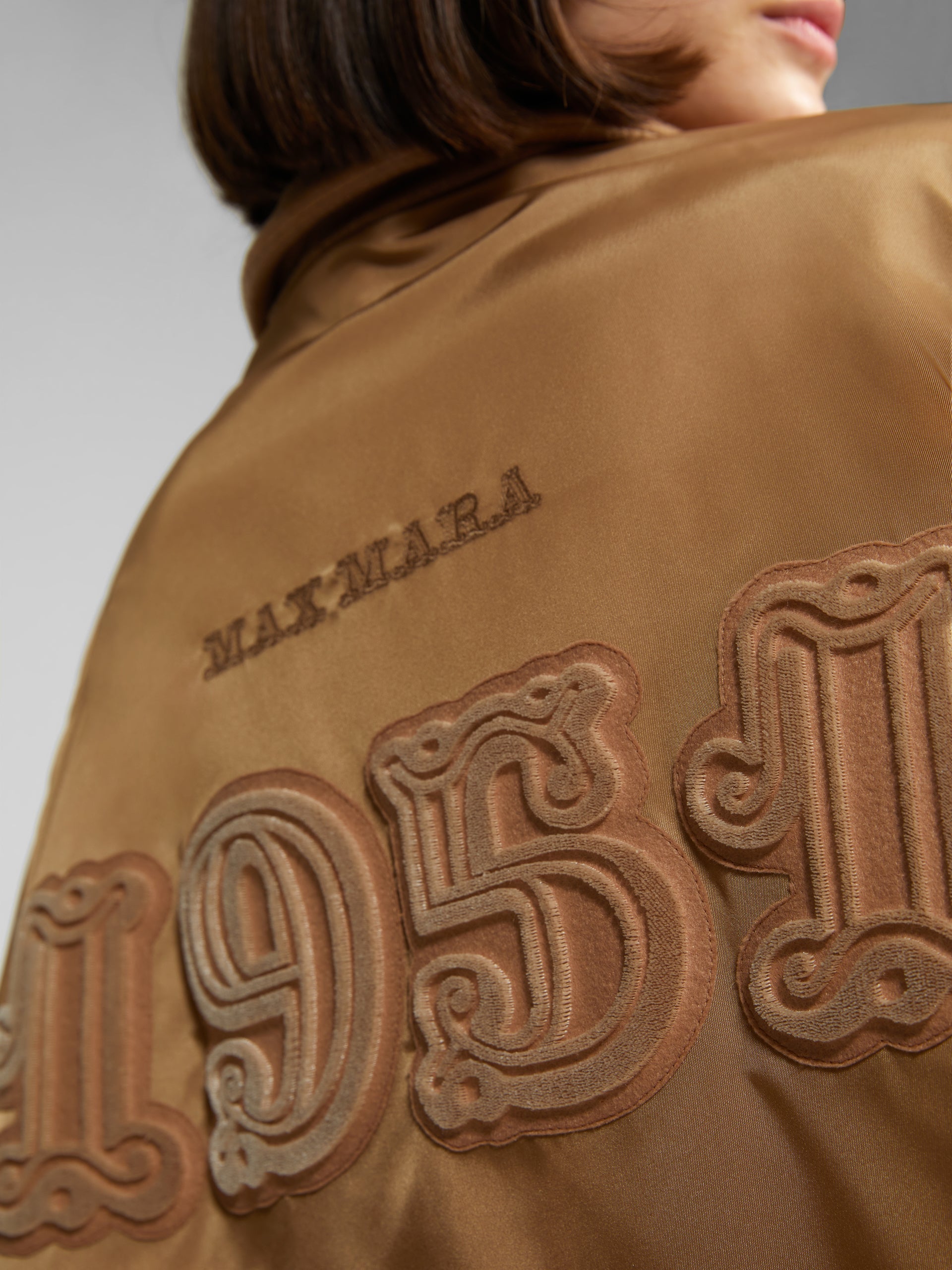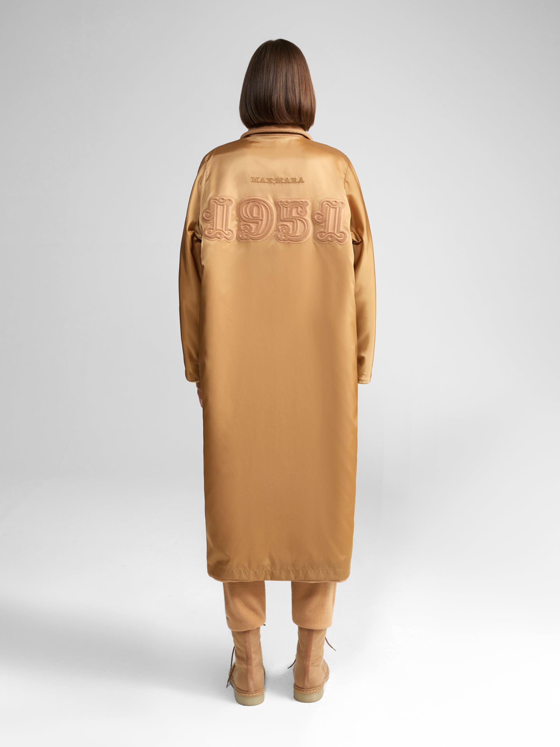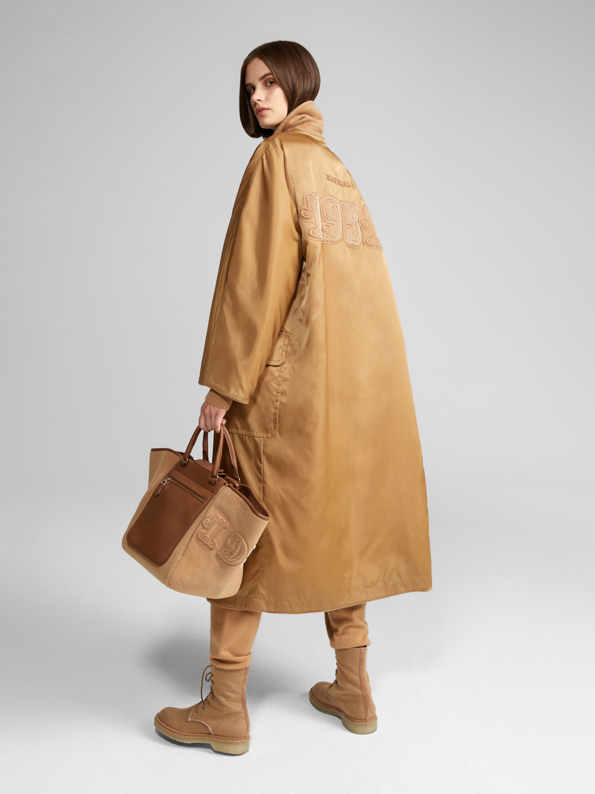 To commemorate Max Mara’s anniversary, the 101801 model has become reversible with its all-new tonal water-repellent technical nylon interior. The coat’s reversible interior features the Max Mara 1951 thread-embroidered detail in the MaxMaragram font and a matching velvet-effect patch appliqué. Flap-adorned large patch inner pockets. Exclusively available in the camel colour.