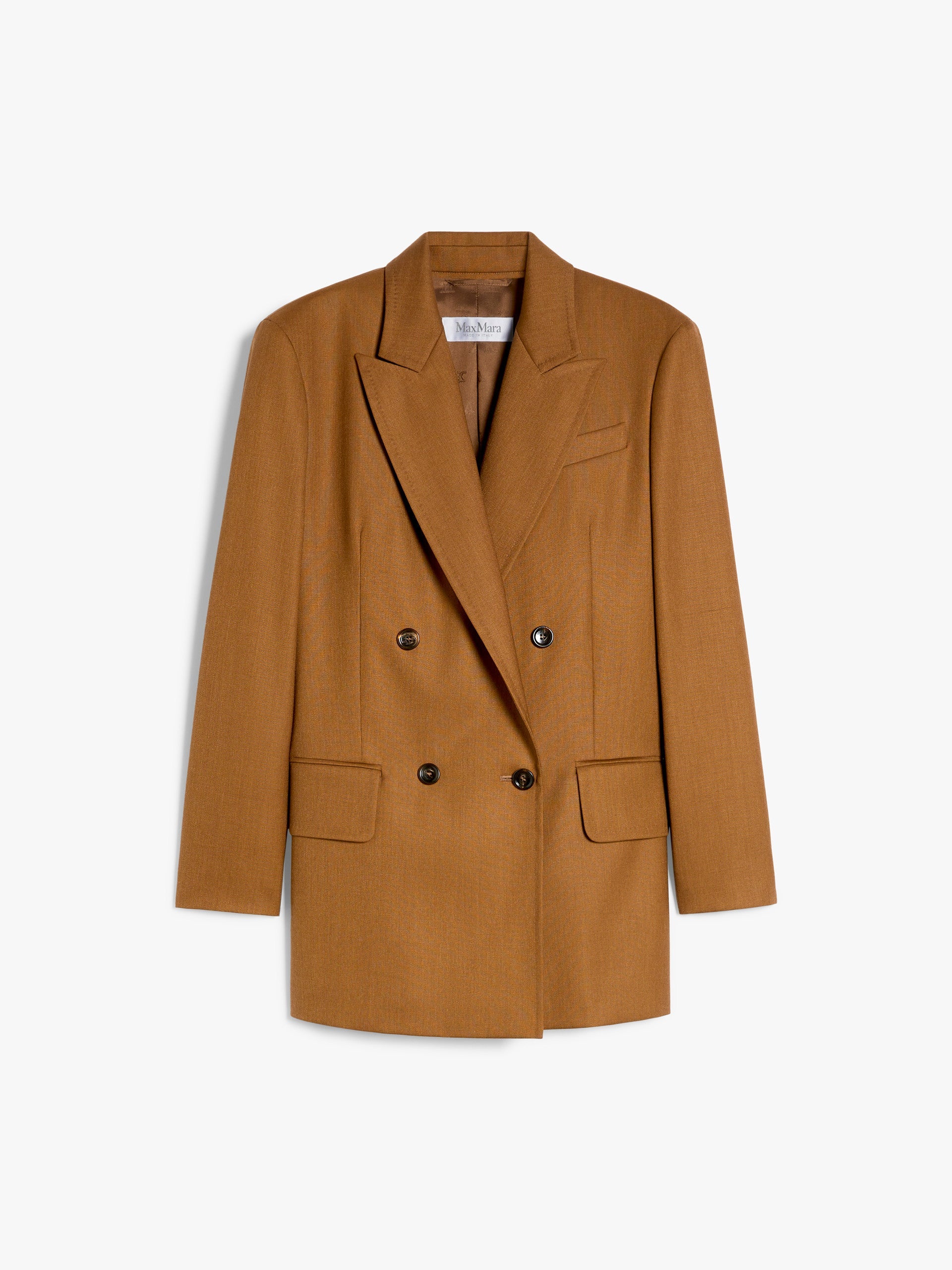 Double-breasted blazer made of luxurious, wool, mohair and silk canvas. Lined, featuring an unstructured fit with peak lapels, a breast pocket and double welt pockets with flap on the front. Finished with small slits and side buttons on the sleeves, tailored pick stitch and double vent on the back. Button fastening.