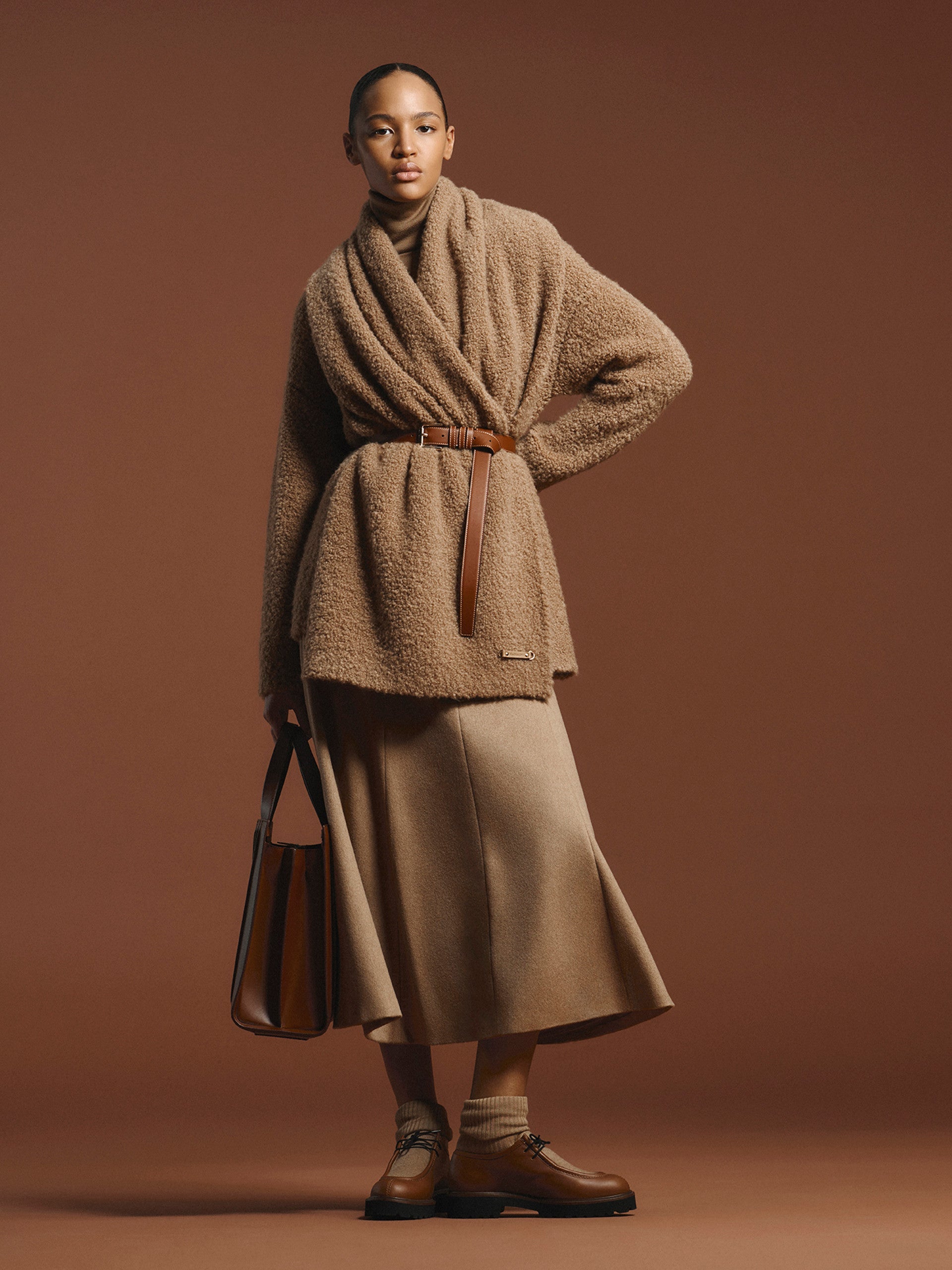 - Skirt in lightweight zibeline baby camel drap