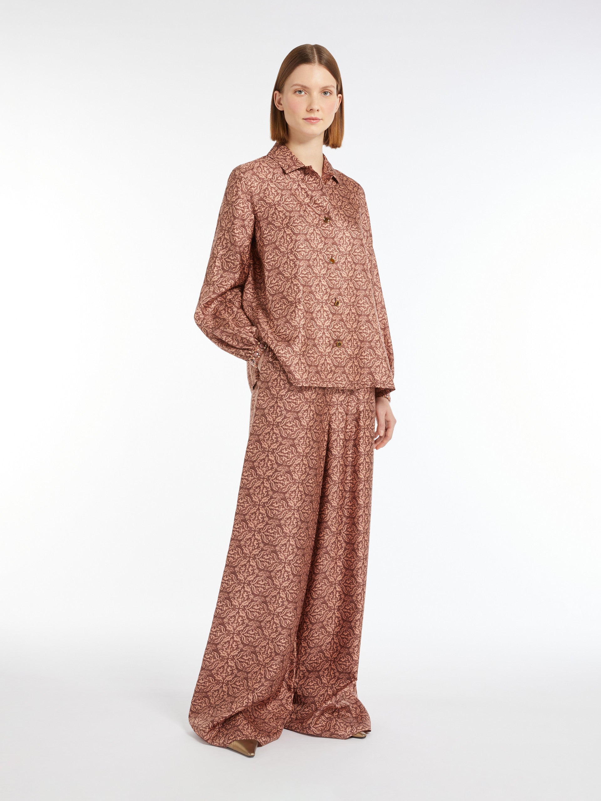 Masculine-style printed silk shirt
