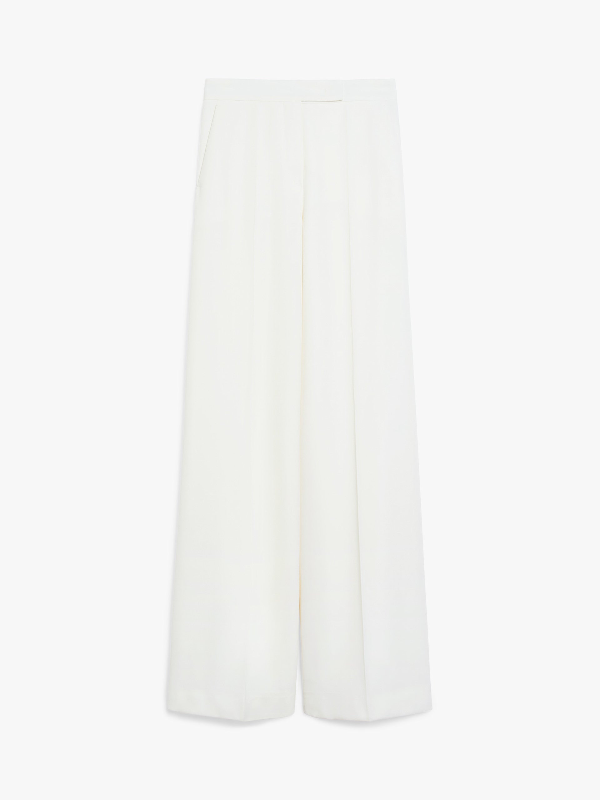 Pure wool gabardine trousers, featuring a high-waisted silhouette, wide-leg, trouser crease and side slant pockets. Fastening with a wide waistband tab, zip fly and small hook.