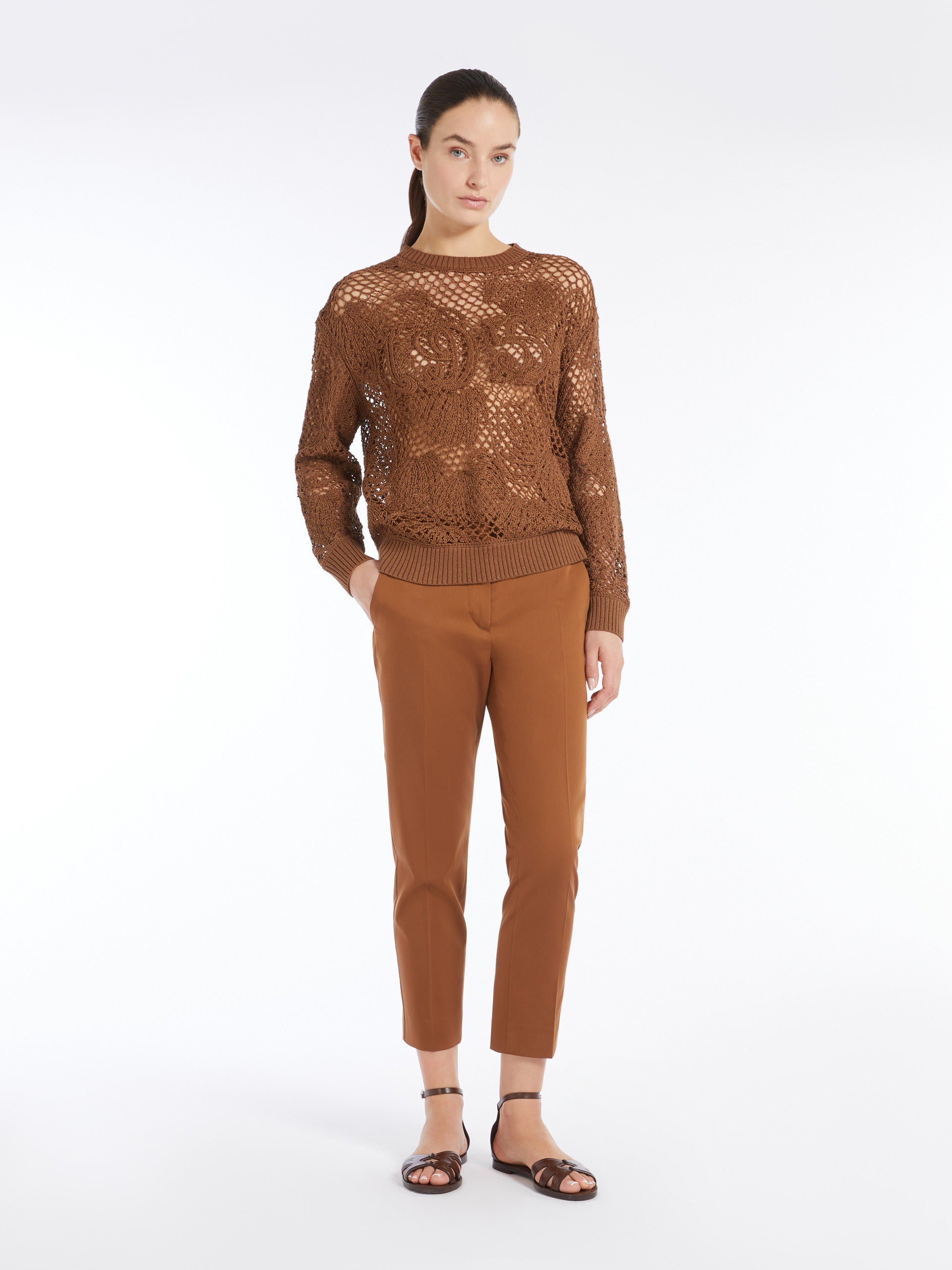 Stretch satin cropped trousers