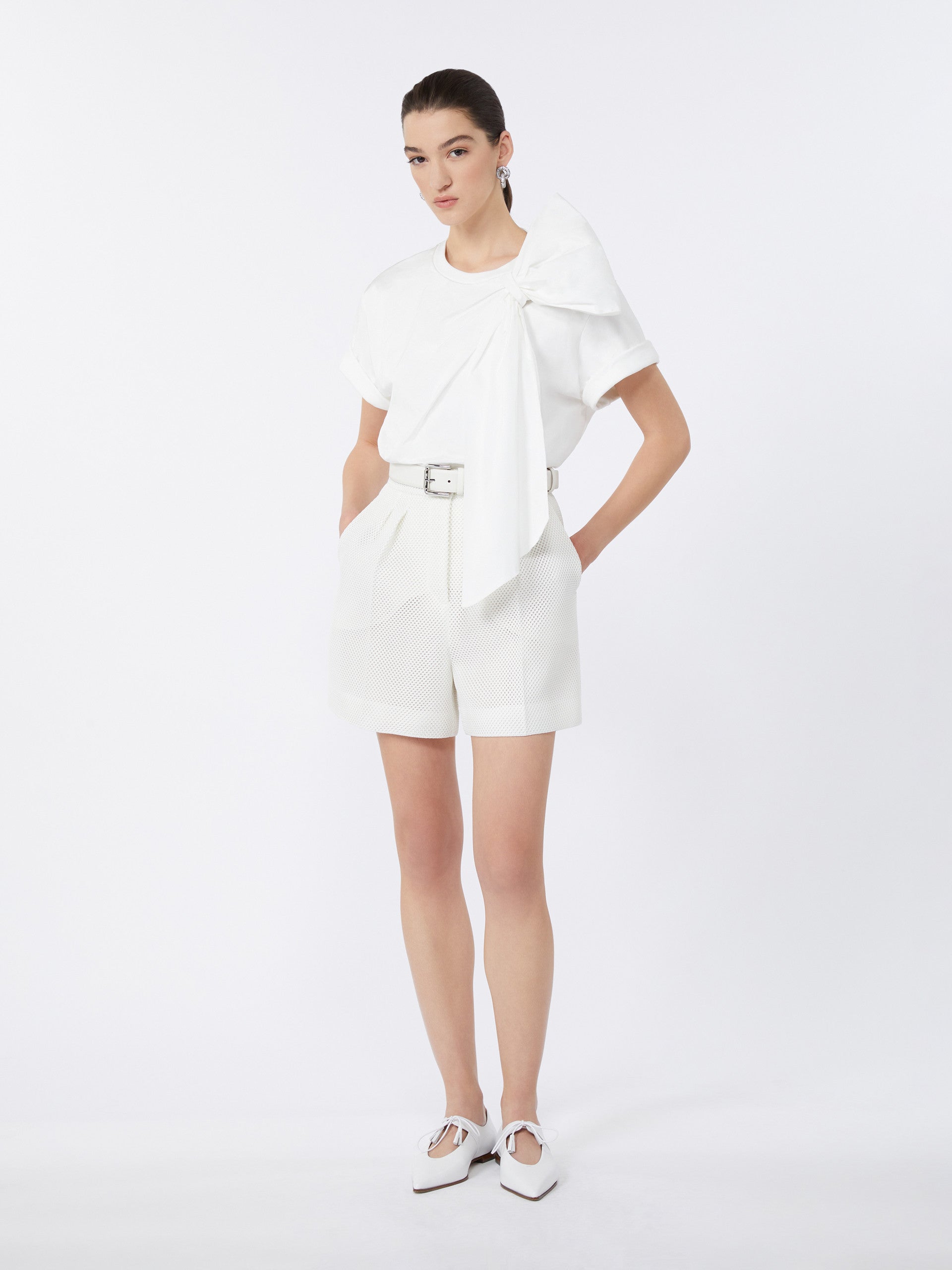 High-waisted shorts with pleats that give volume to the garment.