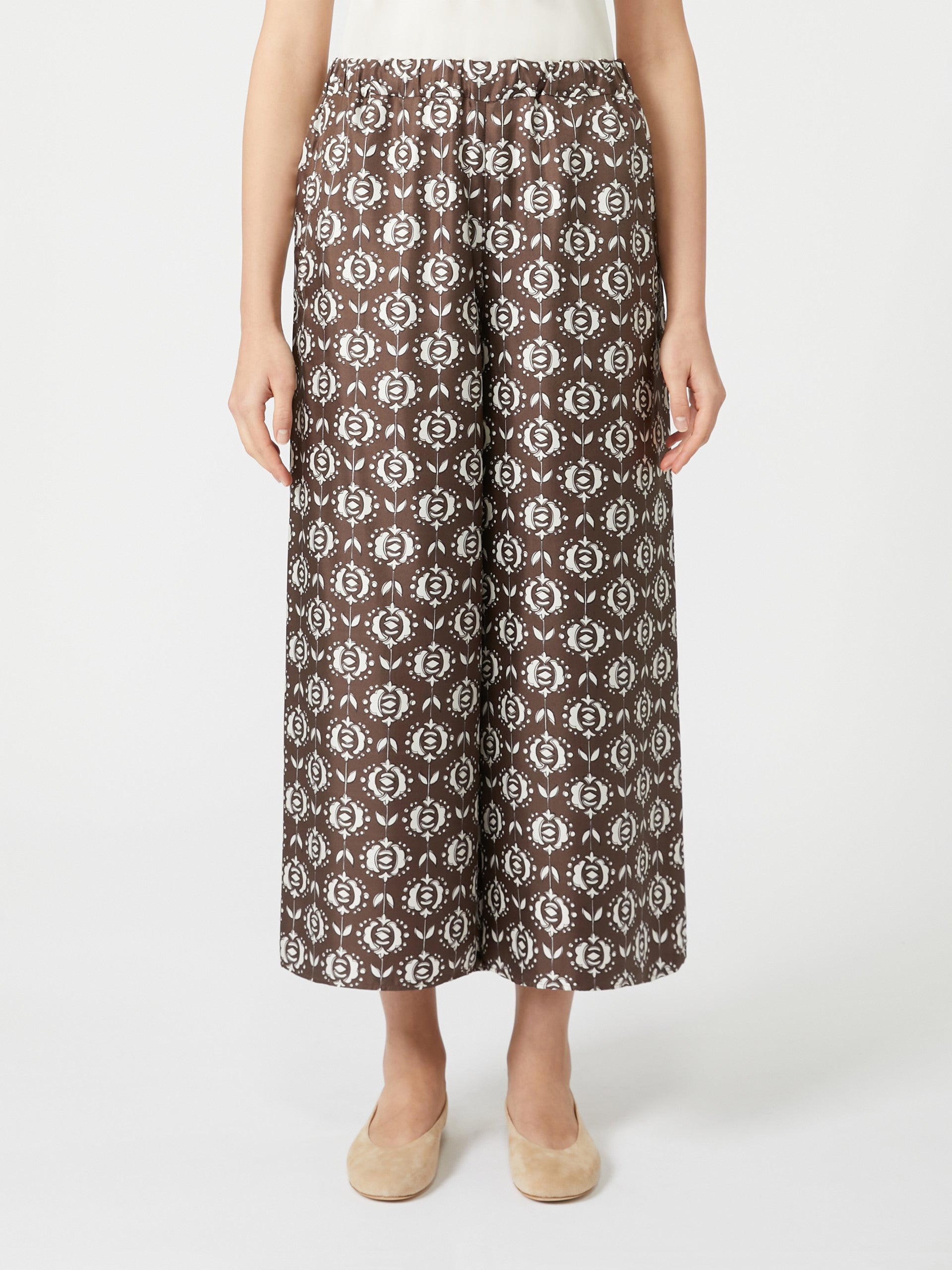 - Printed pure silk twill trousers