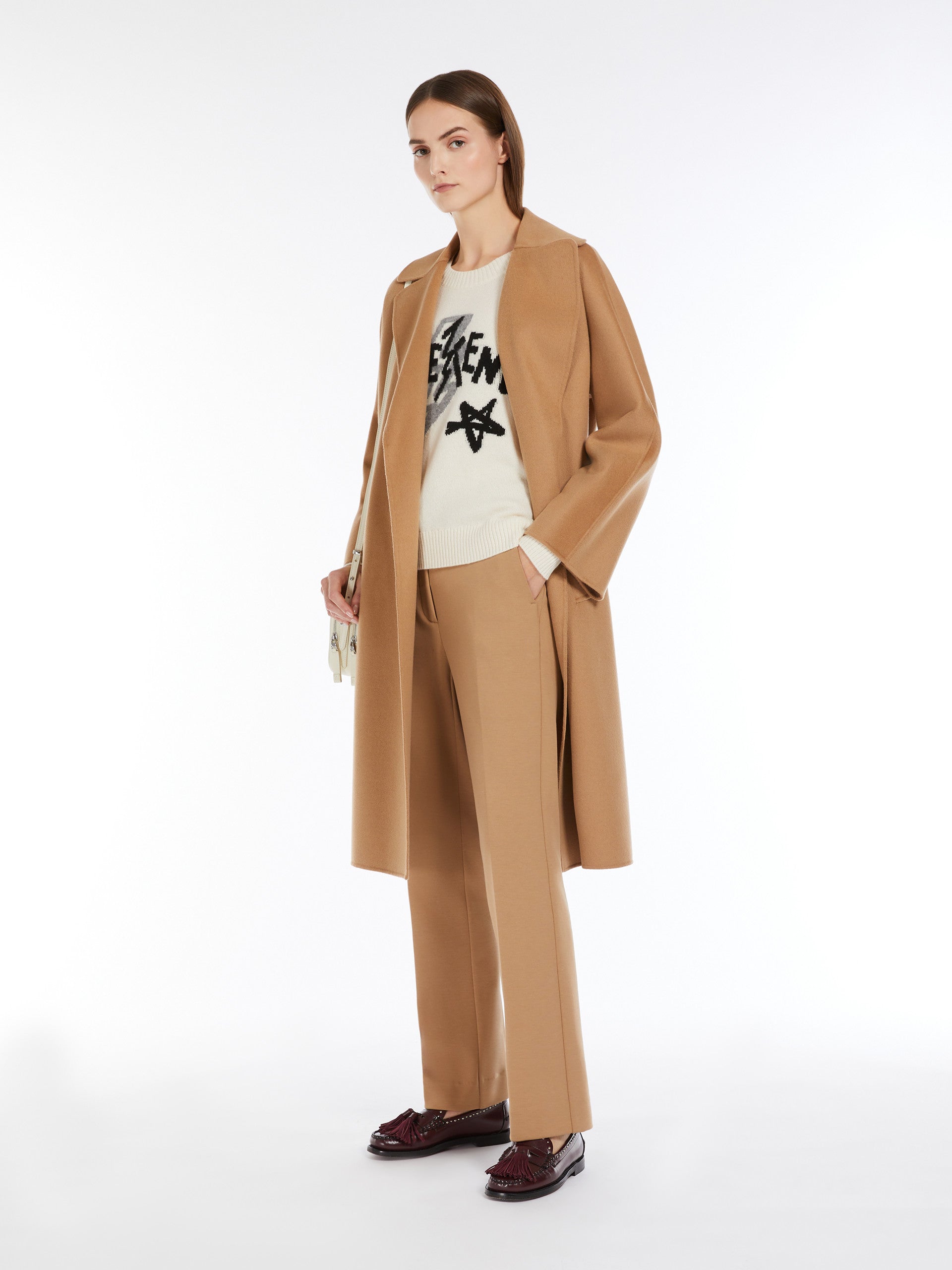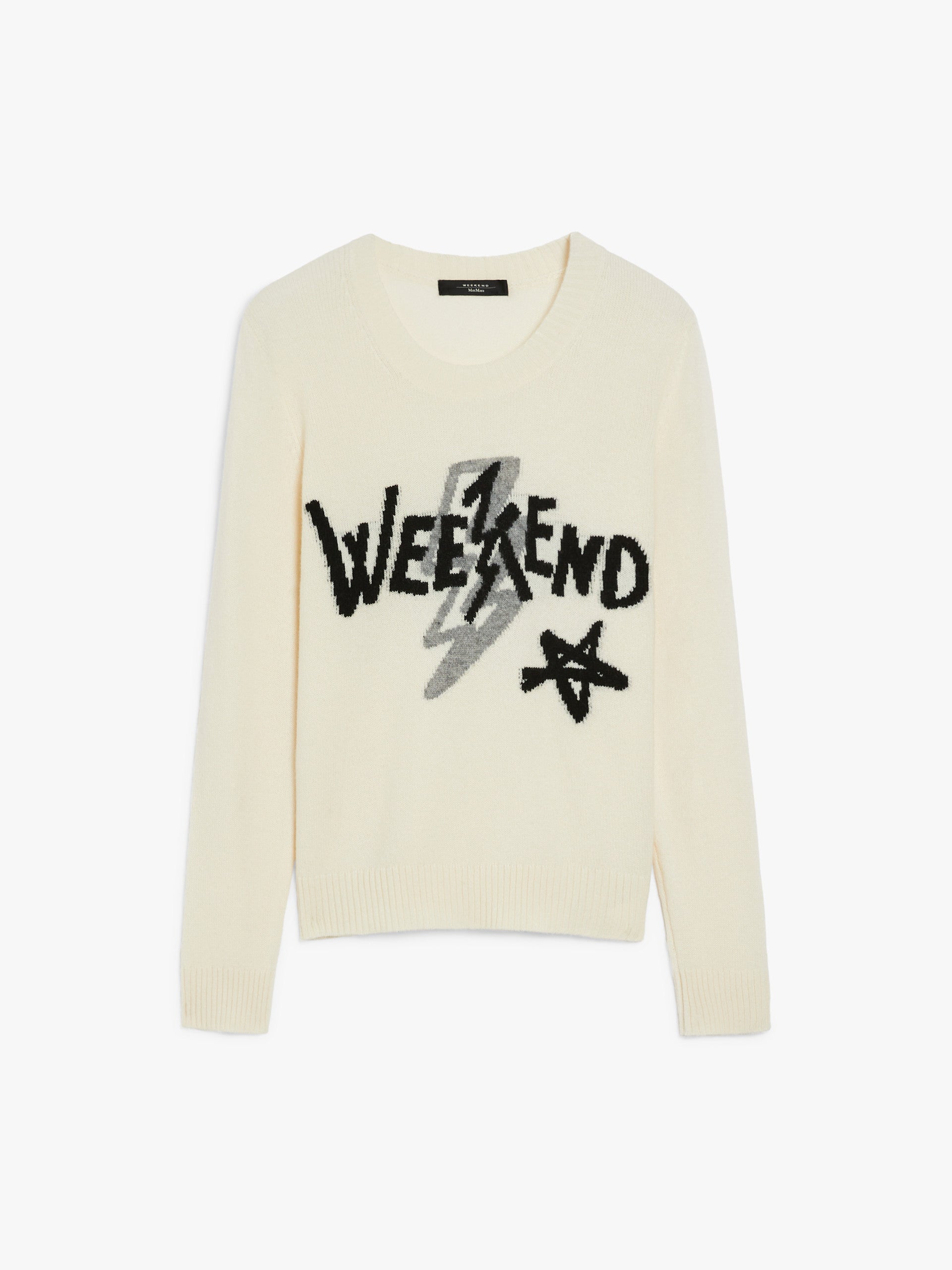 Sweater in fine pure cashmere yarn featuring inlay-knit detail on the front. The regular-fit model boasts a relaxed cut, crew neckline, long sleeves and rib-knit trims.