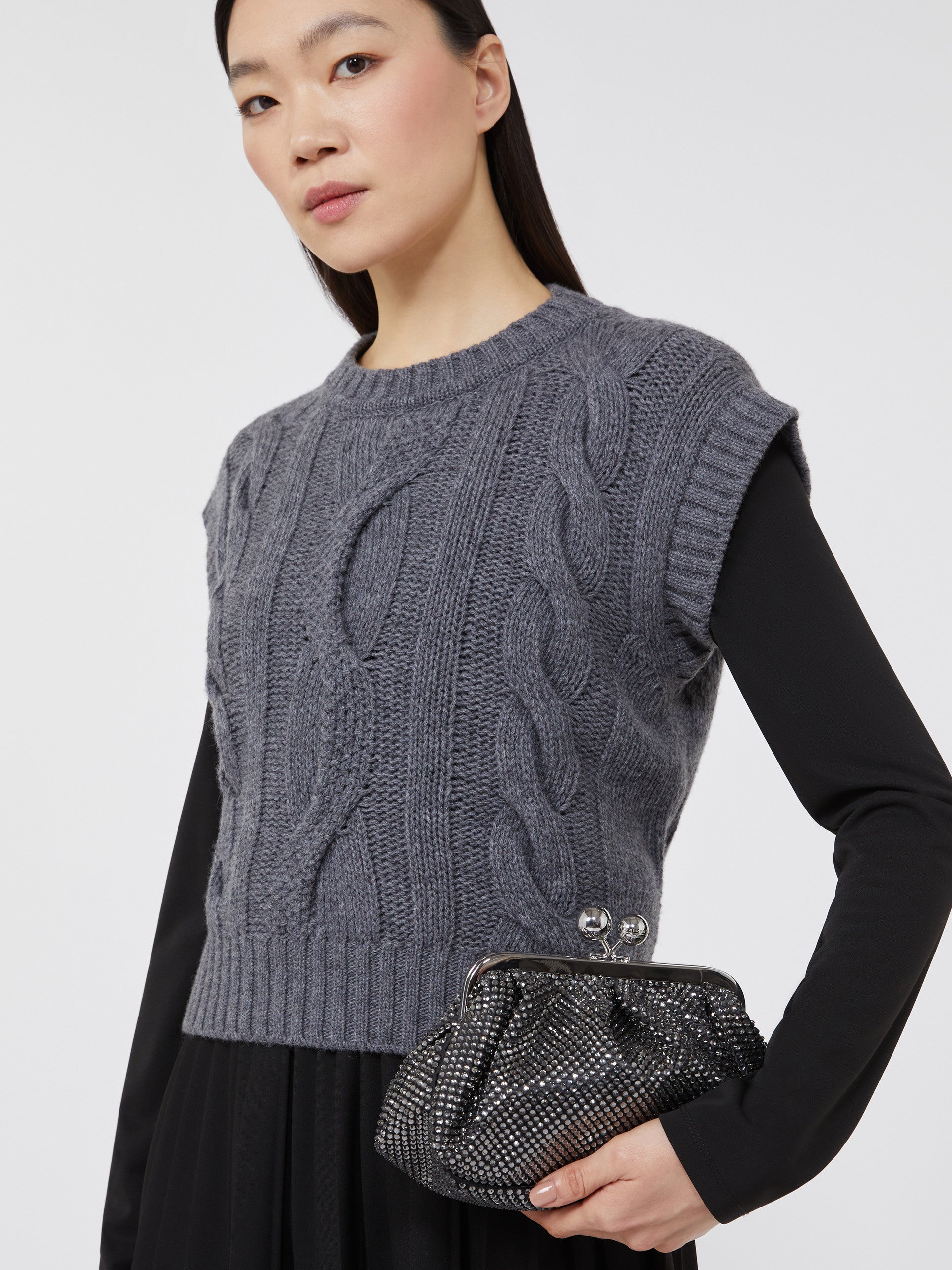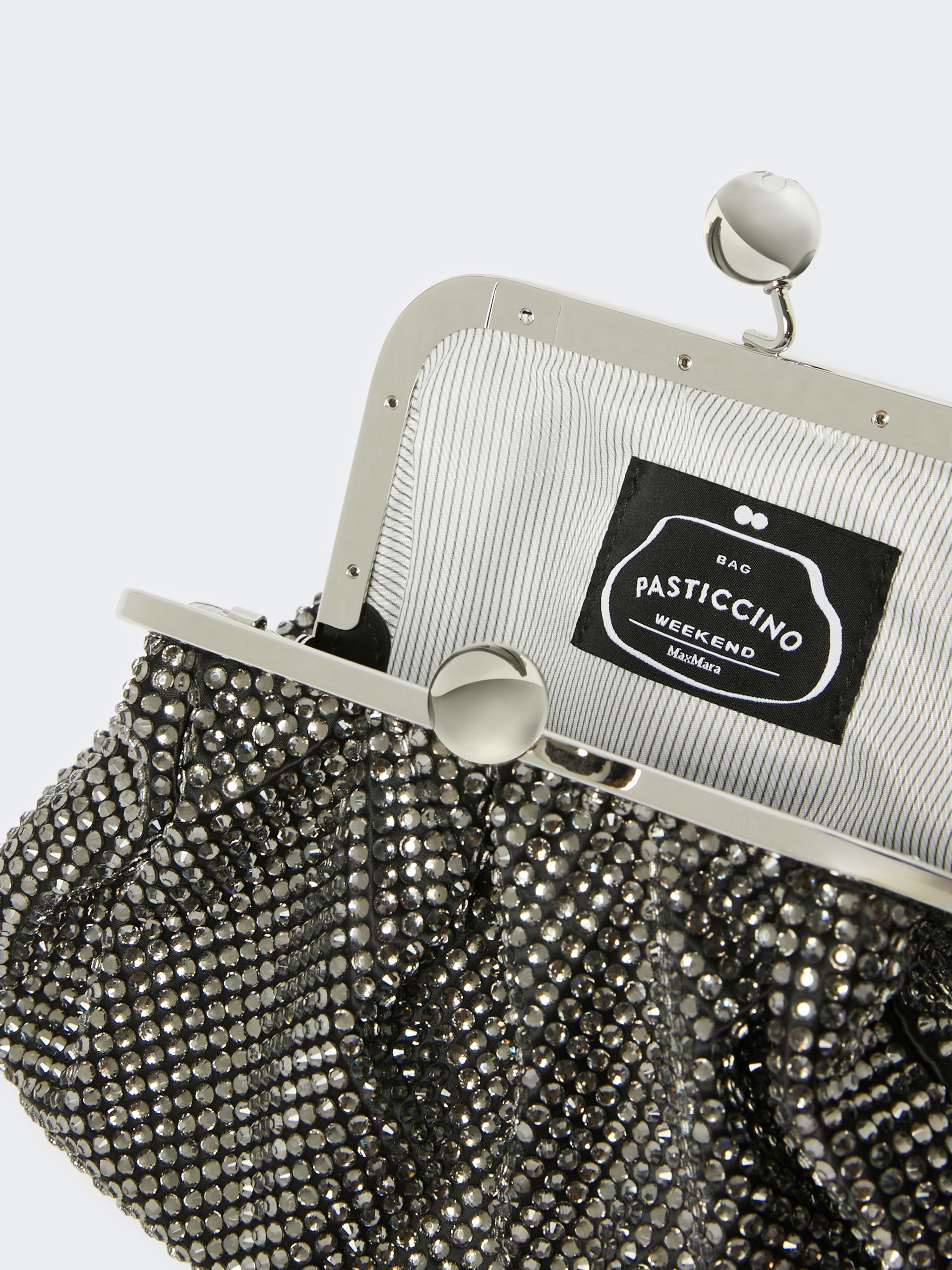 - Satin bag entirely covered in rhinestones