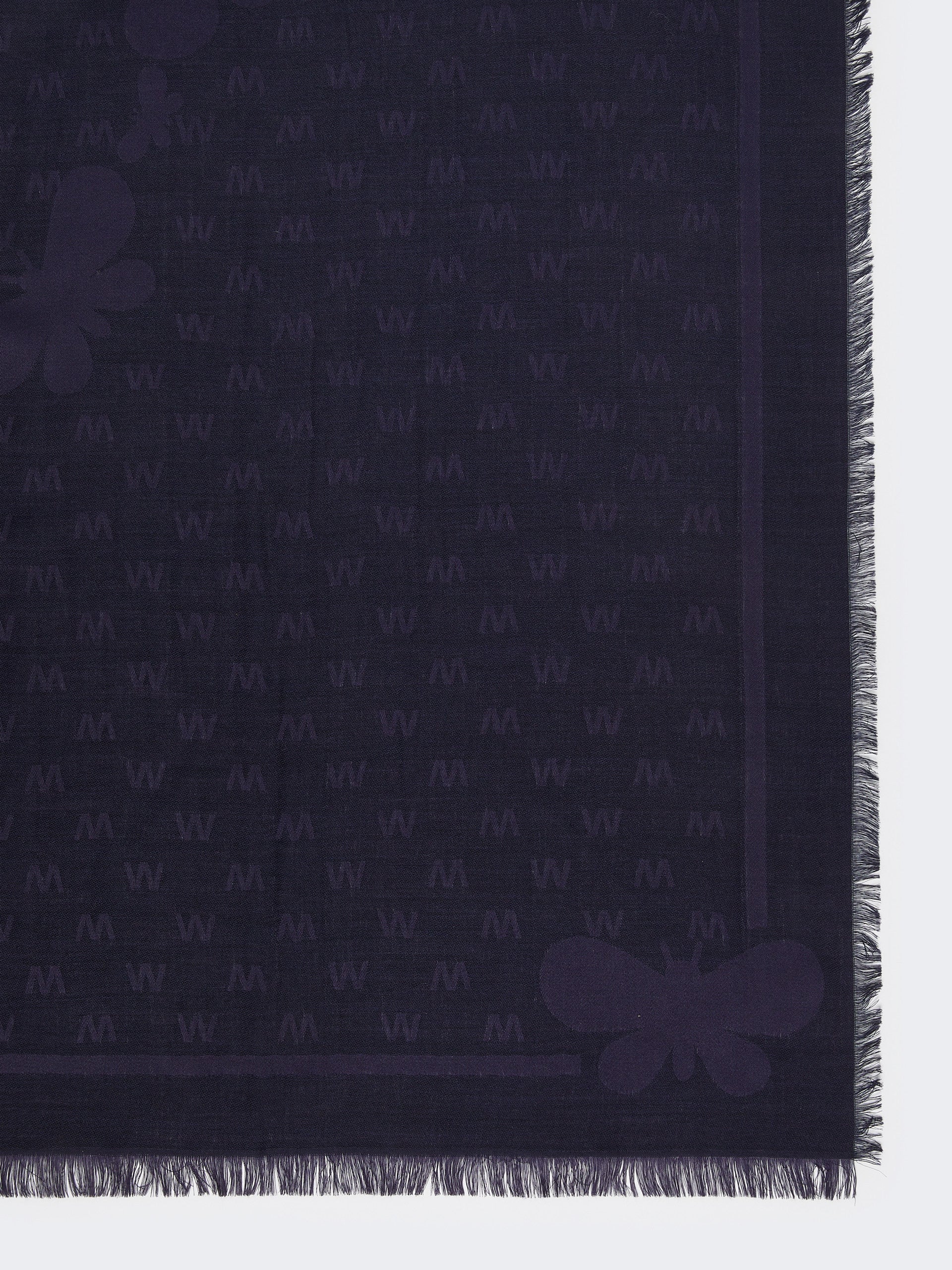 Wide-volume shawl embellished with a jacquard design that creates butterfly details on a background with an all-over micro "W" logo.