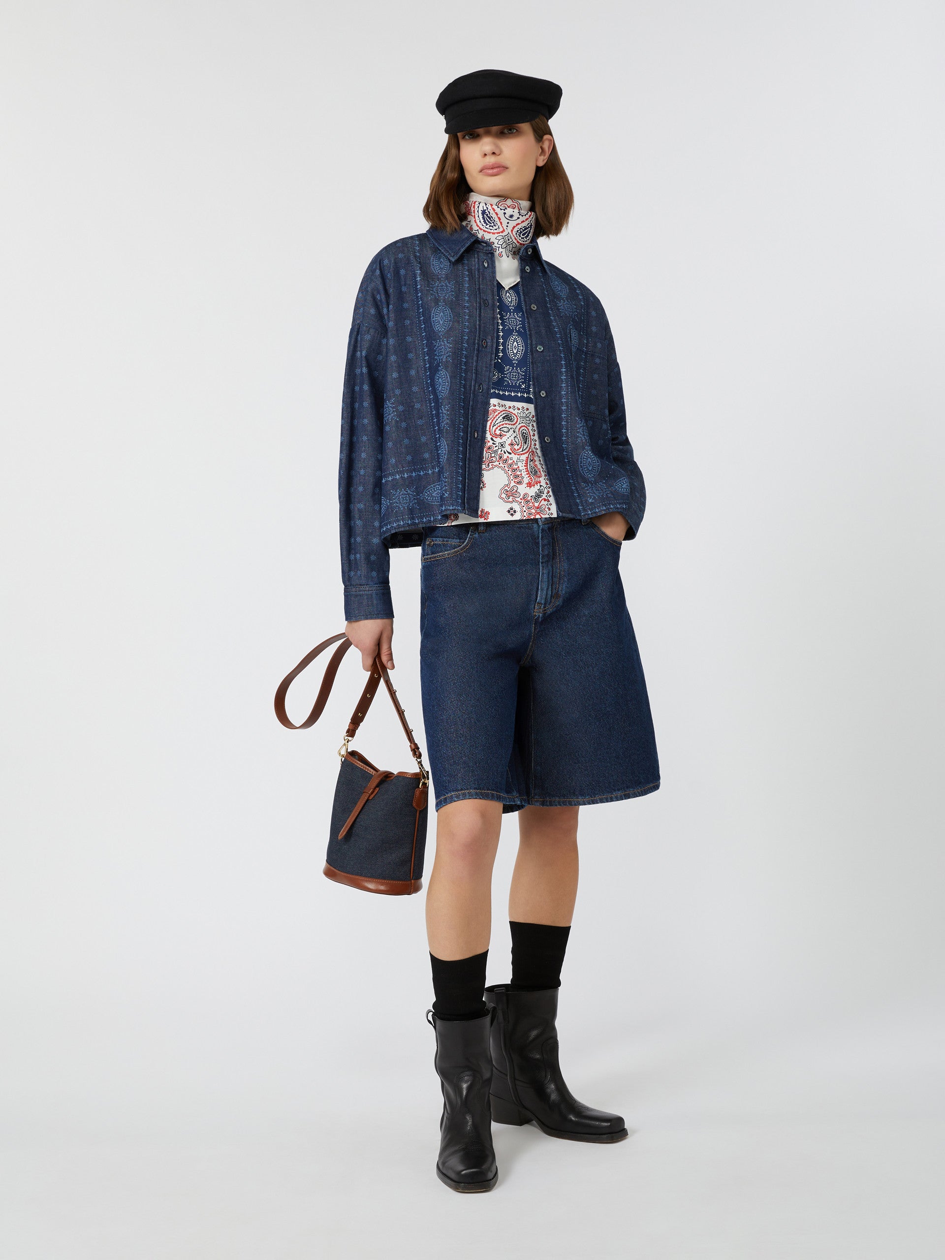 Basic T-shirt customised with all-over print detail and embroidery on the left sleeve.