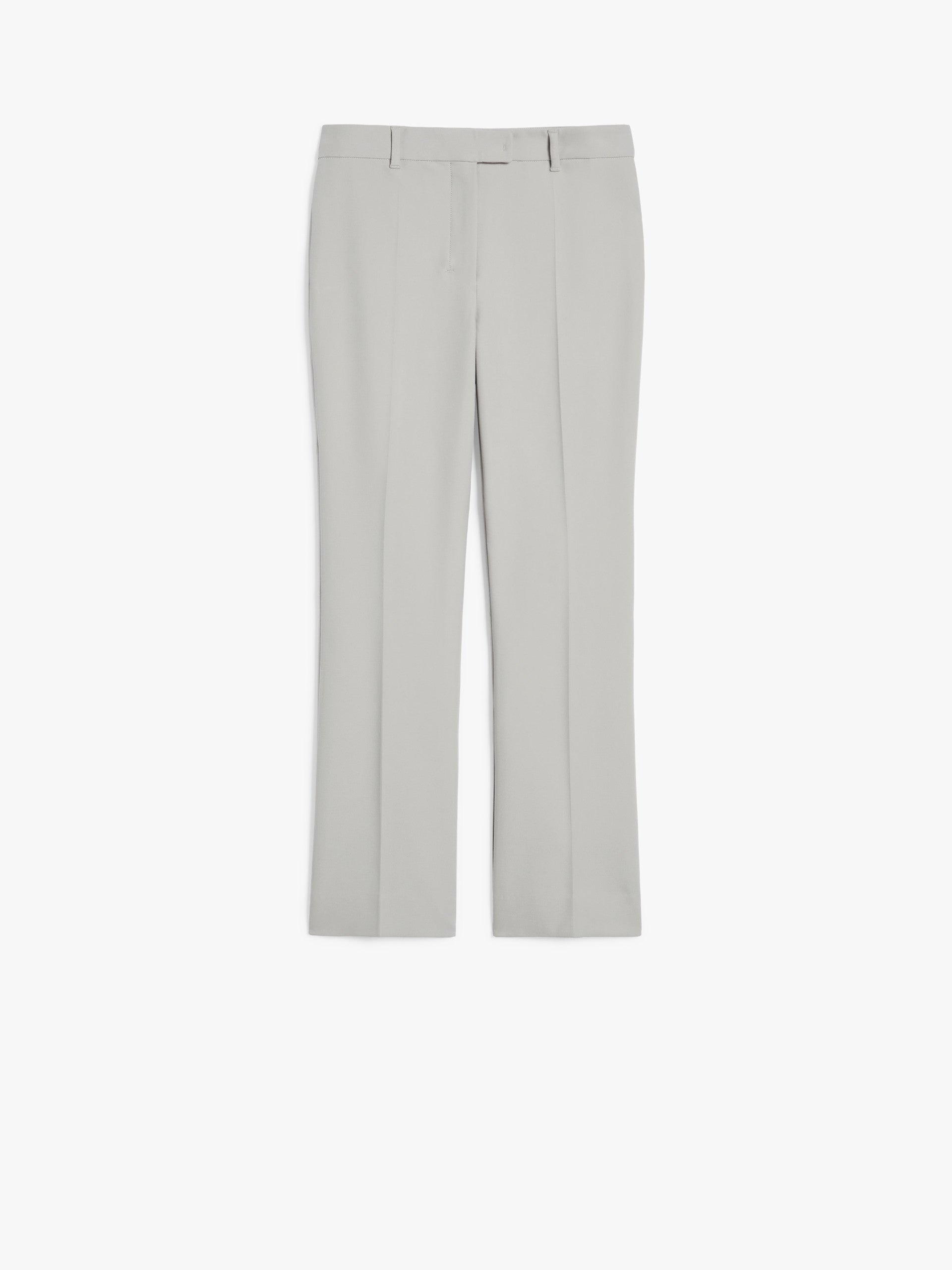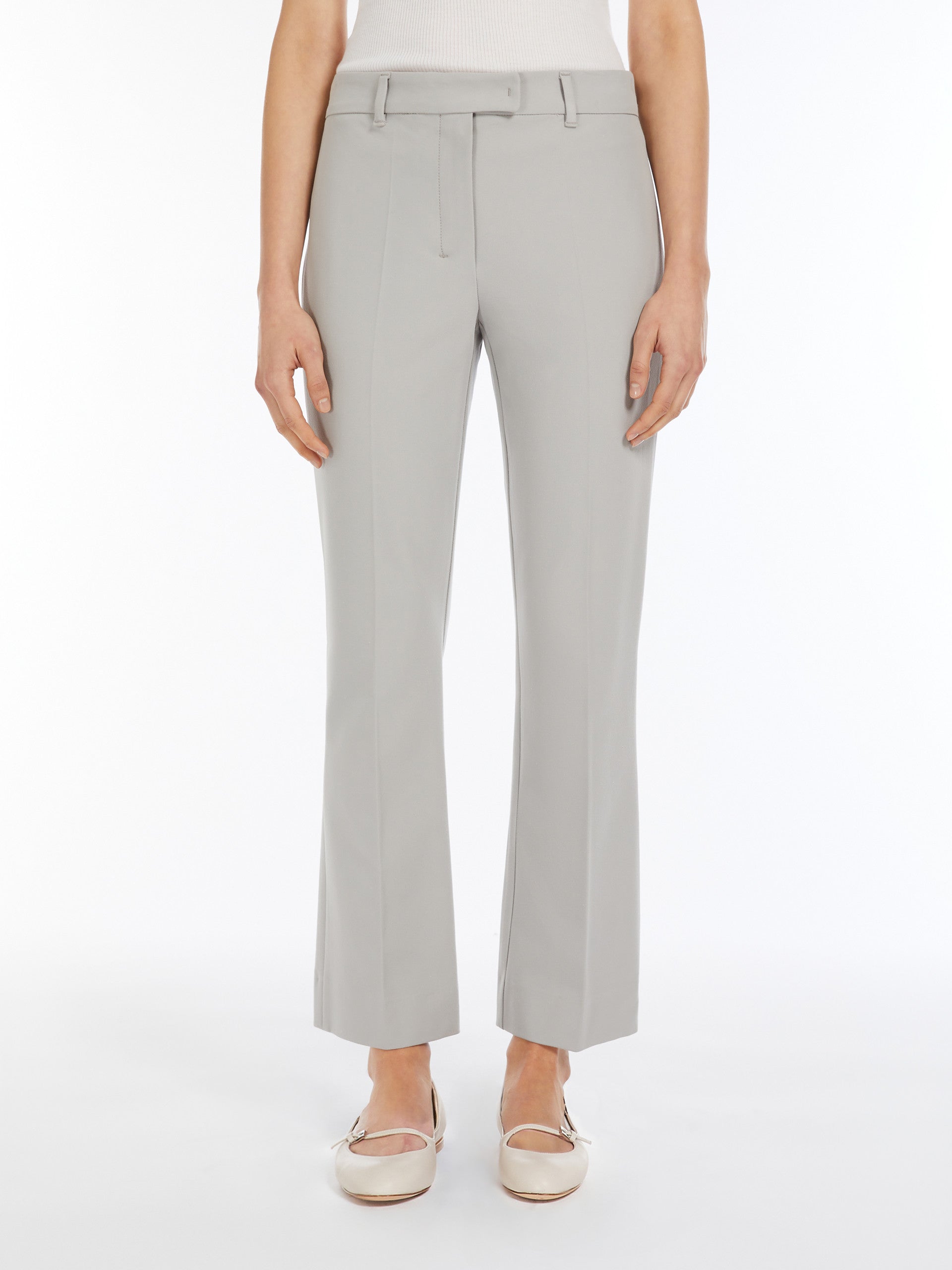 Trousers in double-faced stretch cotton and viscose fabric featuring a slim fit that flares slightly at the hem, in addition to pressed pleat detail on the leg and belt loops. High-cut waistband and a fly-covered zip and hook-and-bar fastening.