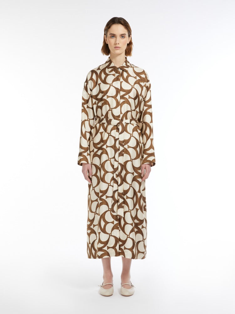 Shirt dress in printed silk