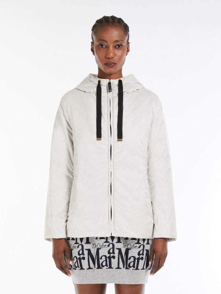 Padded travel sweatshirt in water-repellent upcycled technical canvas featuring a straight fit, drawstring hood, long set-in sleeves and in-seam side pockets. Front zip fastening with a leather pull-tab. The CameLuxe padding sets the model apart: a new frontier as far as upcycling processes are concerned, since any surplus material leftover from cutting the pure camel fabrics for our legendary coats is recovered. The fibres are then reused to create a special padding that boasts the same insulating properties as virgin materials.
