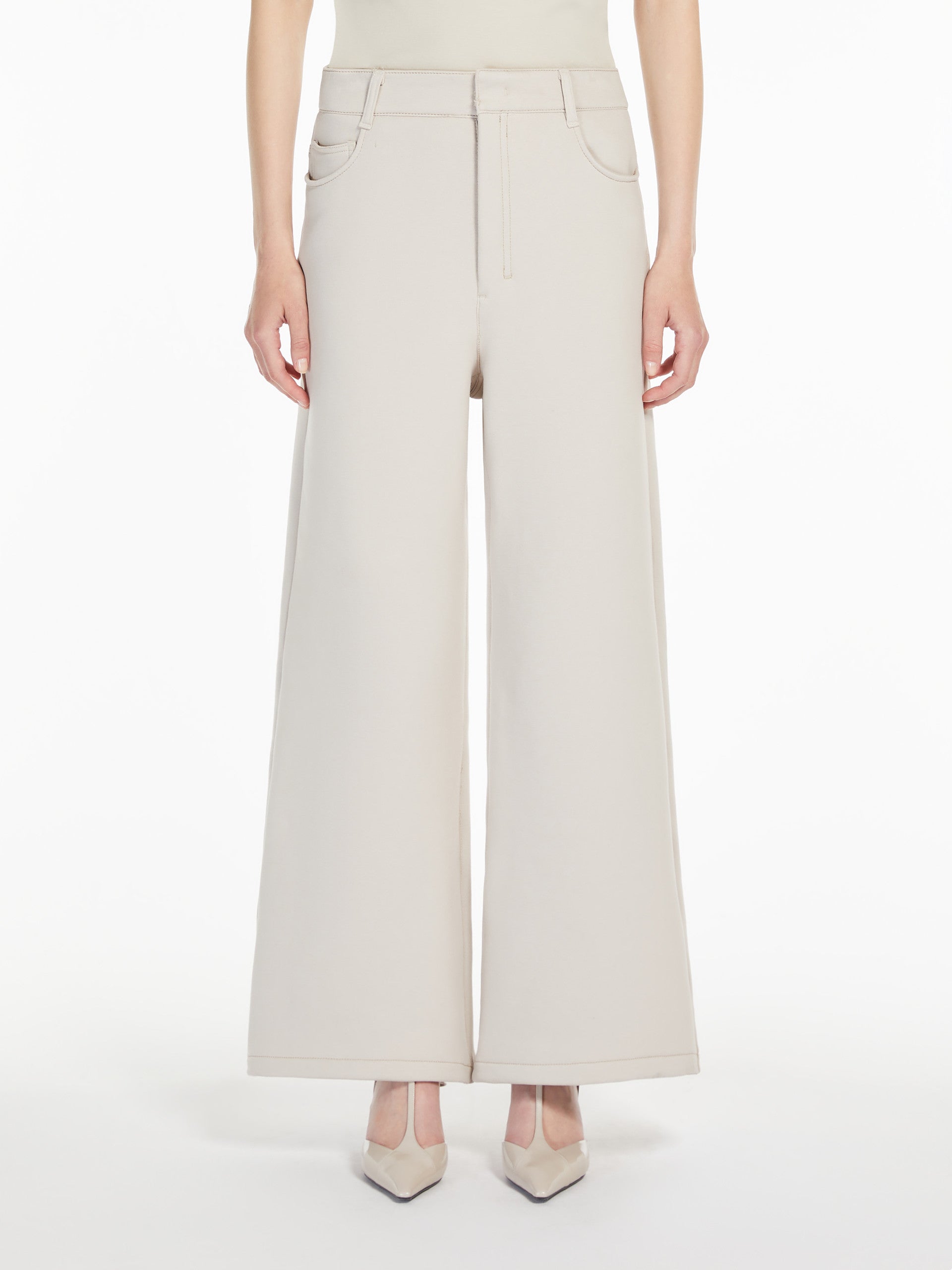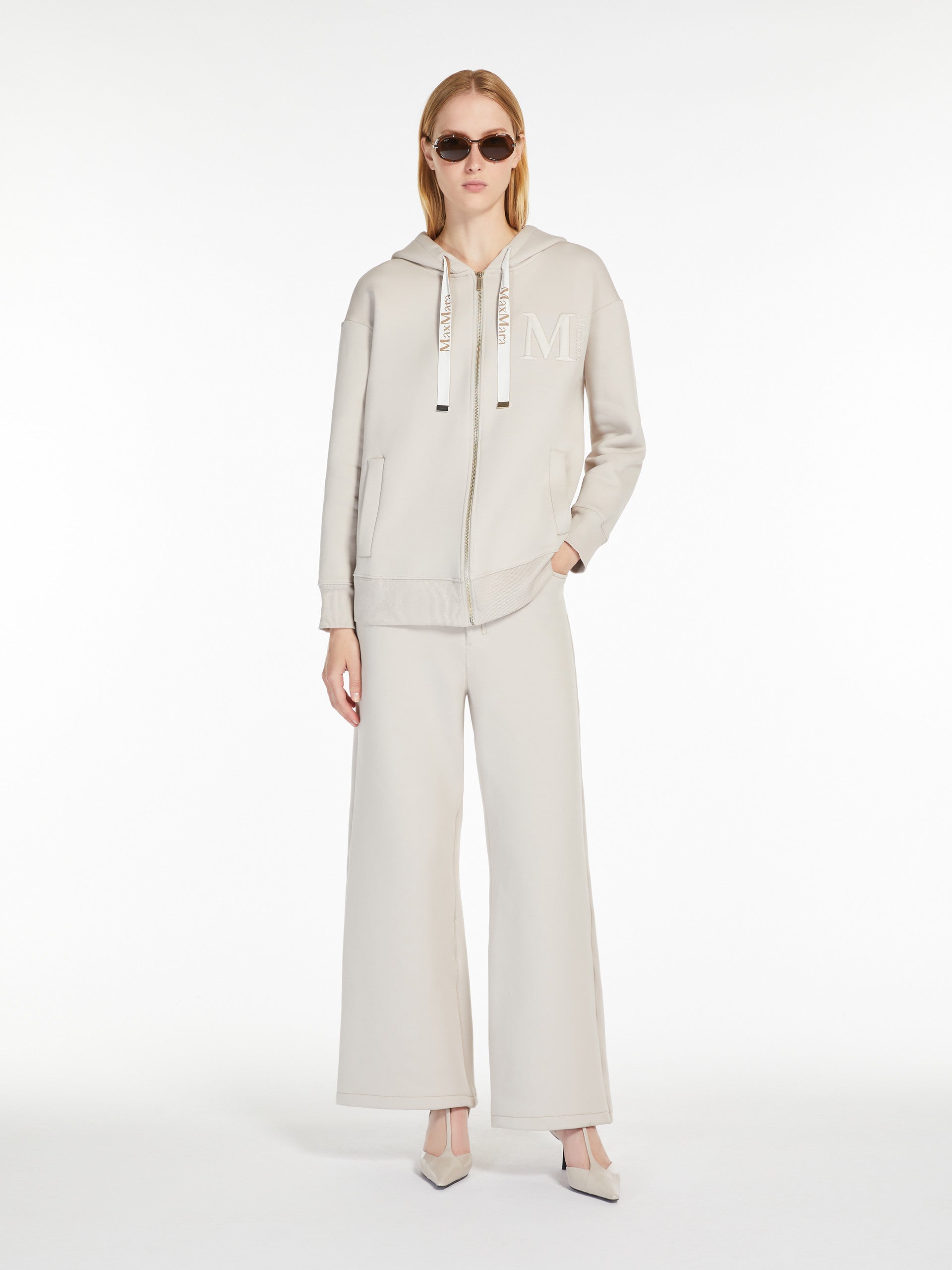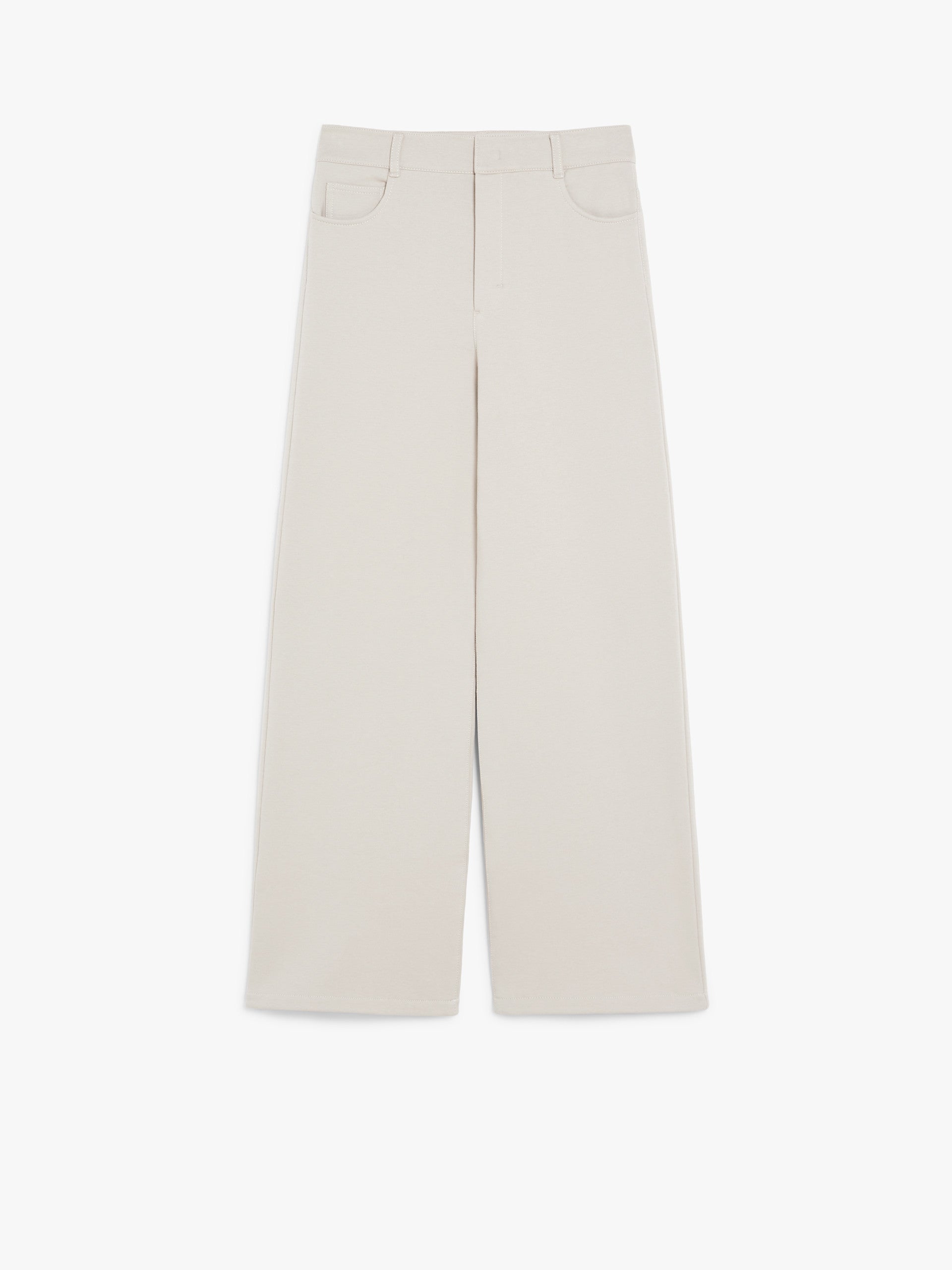 Five-pocket trousers made of soft jersey fleece with a brushed texture. Comfortable, voluminous style with patch pockets on the back and belt loops at the waist. Fastening with a wide waistband tab, zip fly and small hook.