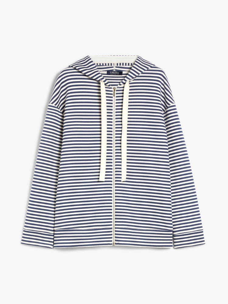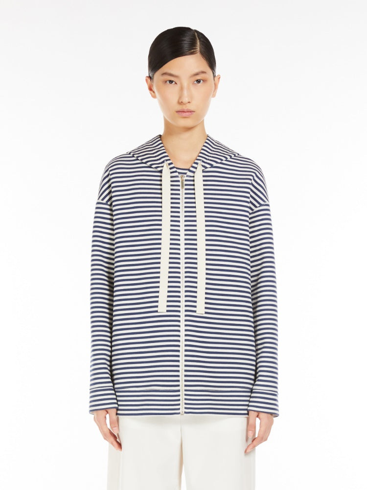 Scuba jersey sweatshirt featuring a drawstring hood, long low set-in sleeves and in-seam side pockets. The back of the model is customised with embroidered maxi Max Mara logo detail. Front zip fastening.