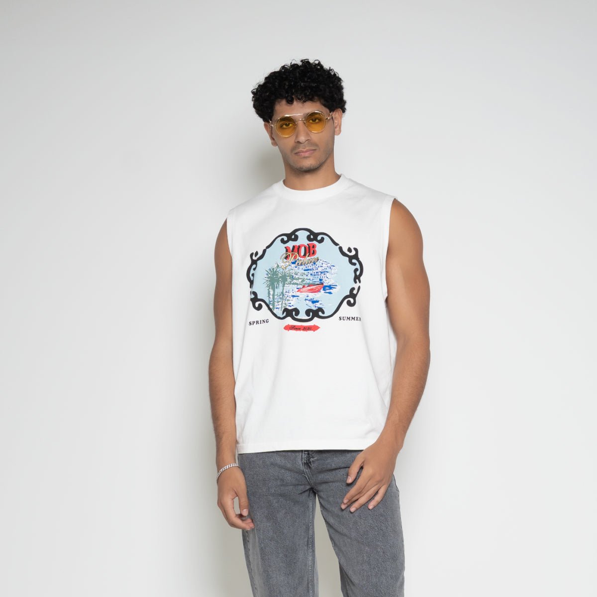 FM Mob Palace Graphic Sleeveless T-Shirt – Vintage White