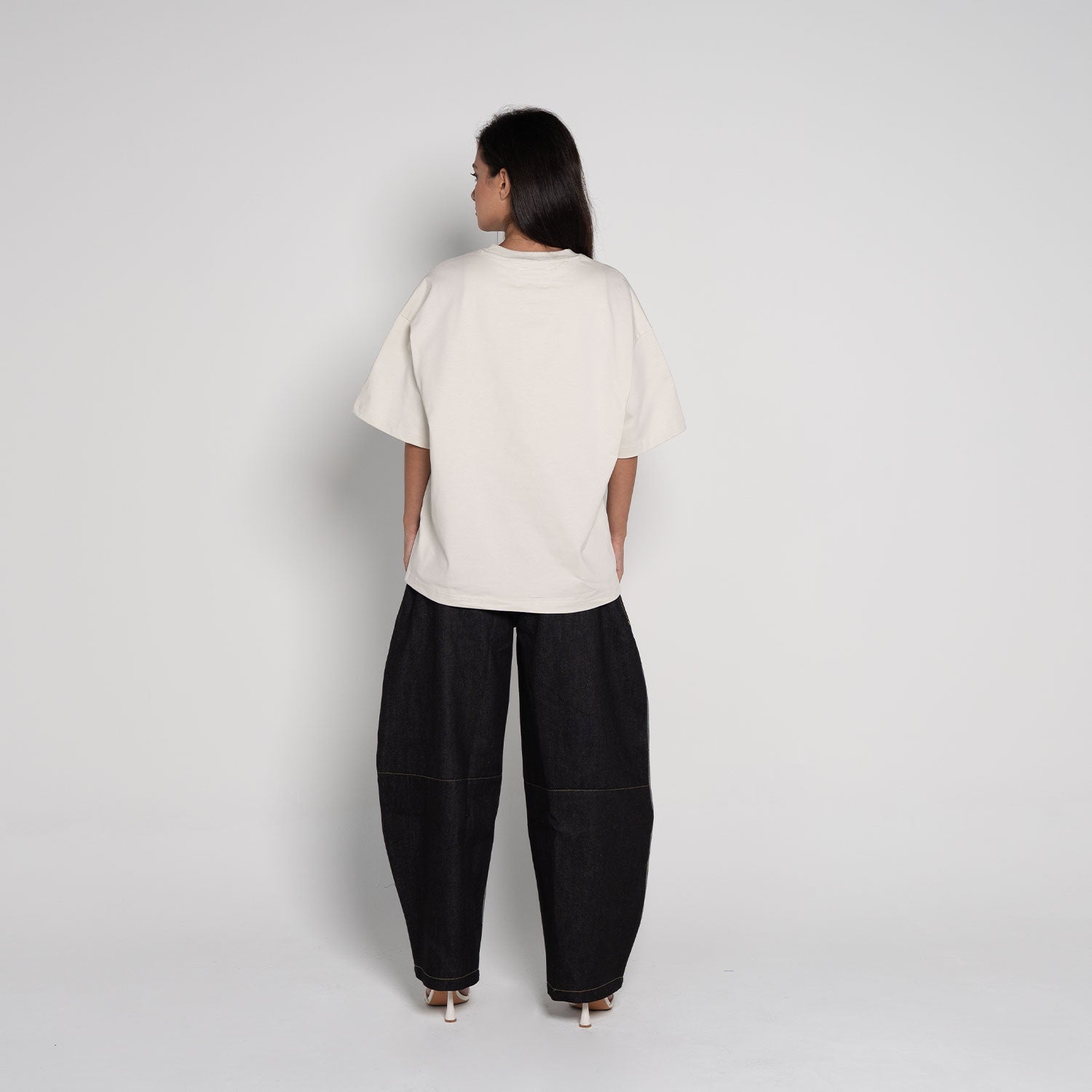 Unisex short-sleeve T-shirt in mid-weight cotton with a relaxed fit. Designed in vintage white with a faded stone-wash finish.