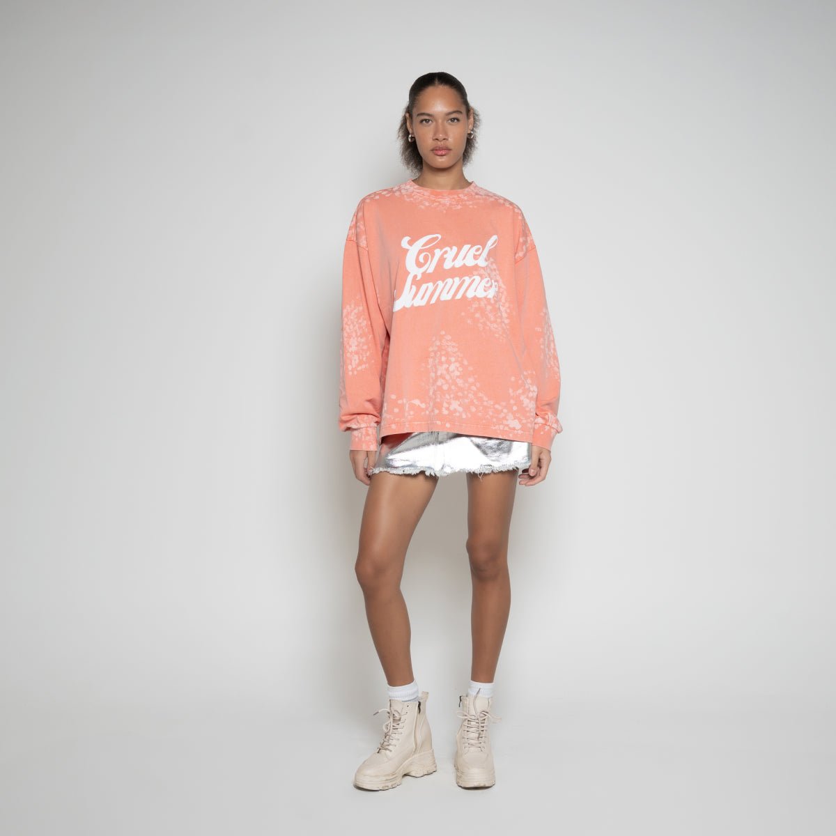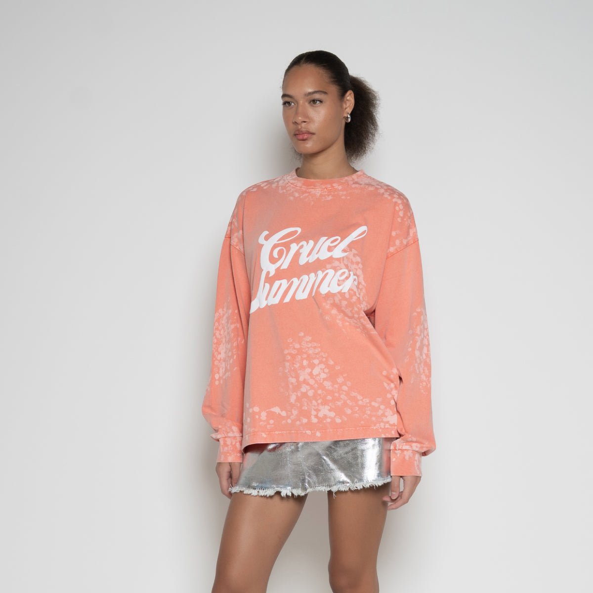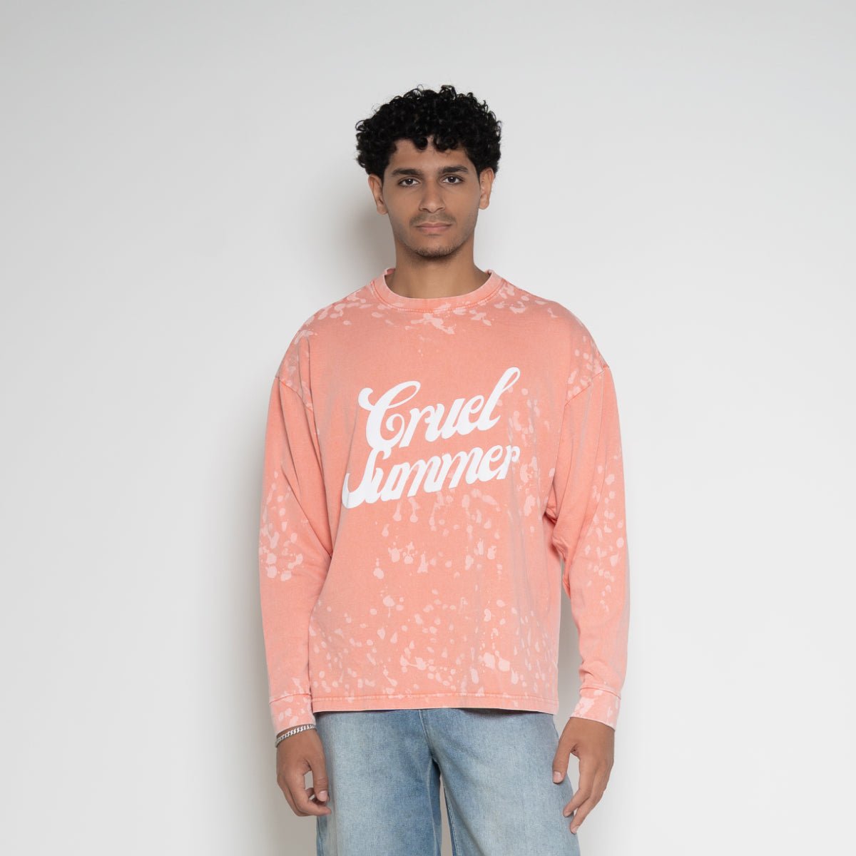 Unisex sweater crafted from heavyweight cotton in a vintage coral tone. The stone-washed finish gives a unique sun-faded effect, enhancing the worn-in character. A bold “Cruel Summer” front graphic defines the piece, adding a statement edge to its minimal base.