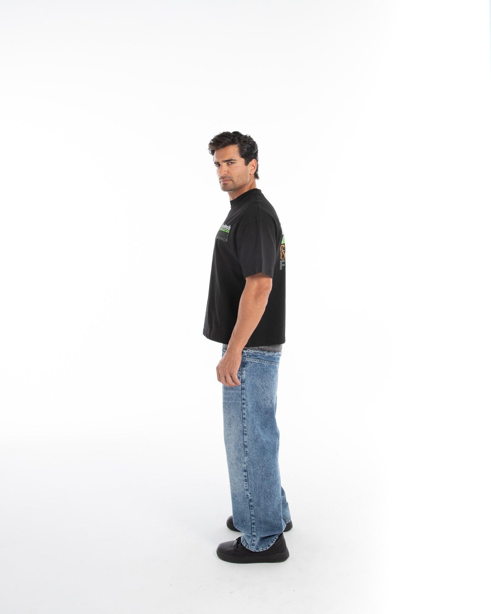 The standout feature of this t-shirt is the bold and eye-catching graphic text design. The oversized print is sure to make a statement, whether you're going for a casual or edgy look. The design is printed using durable and vibrant colors, ensuring it stays looking new wash after wash.